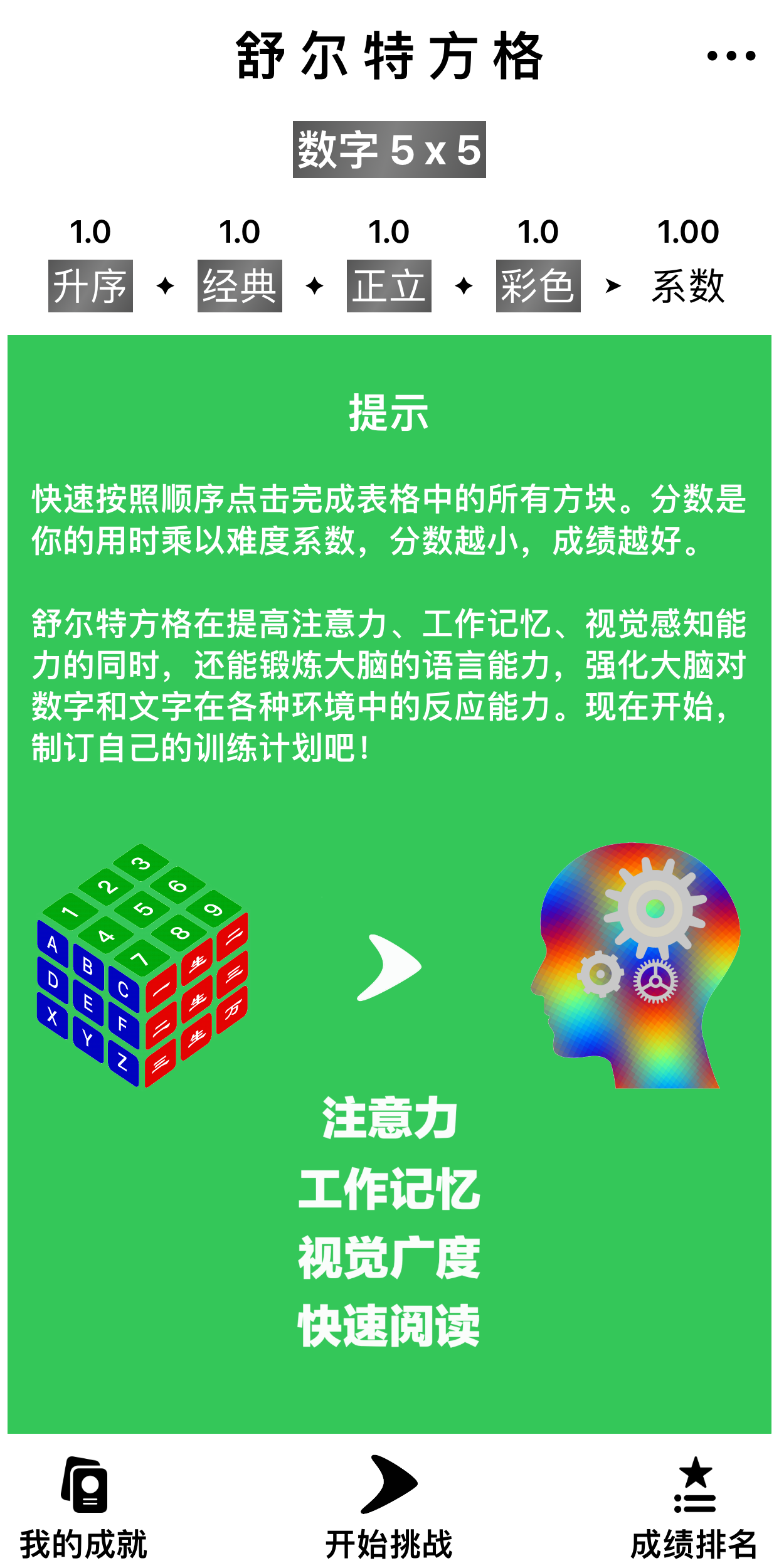 舒尔特方格App使用说明